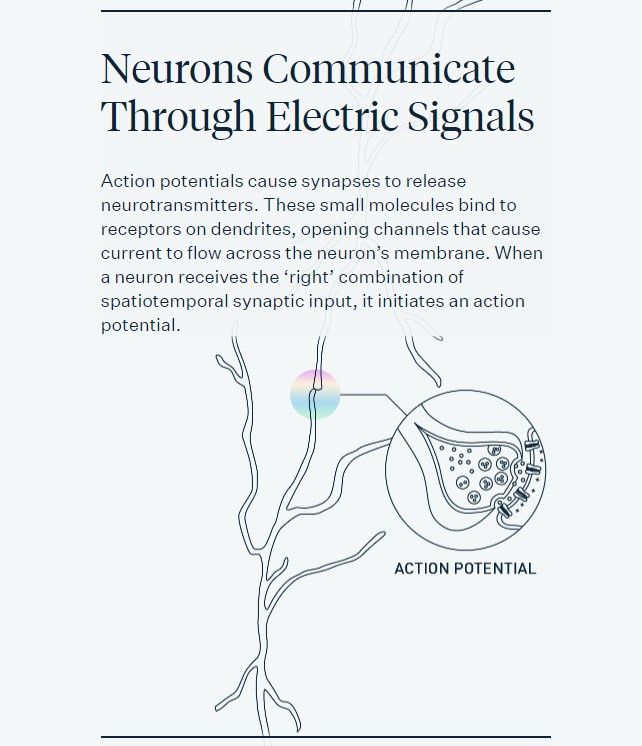 The brain has around 86 billion neurons. These nerves communicate through electric signals: